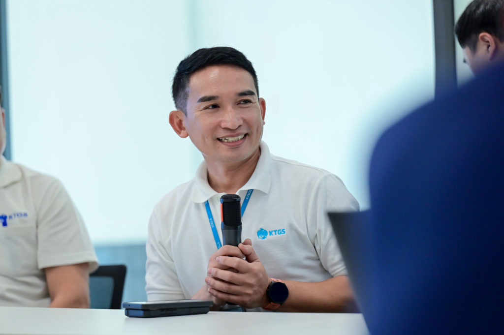 อีกทั้ง กรรมการผู้จัดการ KTGS ได้ร่วมพูดคุยกับคณะพนักงานนำโดย คุณวีระชัย ชุมคำไฮ ผู้จัดการส่วน ศูนย์อุดรธานี กล่าวขอบคุณในความทุ่มเทของพนักงานทุกคนที่เป็นกำลังสำคัญของบริษัทส่งมอบงานบริการที่ดีถึงมือลูกค้าเป็นที่น่าไว้วางใจต่อไป พร้อมทั้งพบปะพูดคุยกับพนักงานปฏิบัติการเพื่อรับฟังข้อมูลปัญหาการทำงาน ความต้องการต่างๆ ในงานบริการเติมเงินและแก้ไขเครื่อง E-Machine เพื่อให้มีความพร้อมบริการสร้างความพึงพอใจต่อลูกค้า