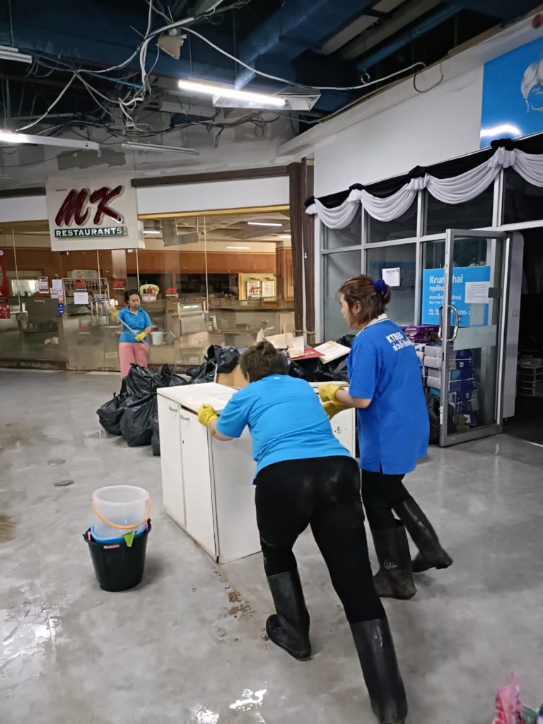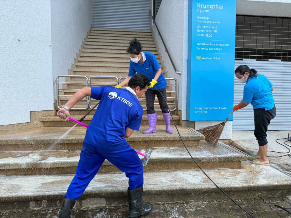 นอกจากนี้คณะพนักงานจิตอาสา KTGS ยังเร่งเข้าพื้นที่ทำความสะอาดขัดล้างตัวอาคารของ บมจ.ธนาคารกรุงไทย ในสาขาที่ประสบภัยน้ำท่วม เช่น สาขาหาดใหญ่ใน สาขาราษฎร์ยินดี สาขาทุ่งลุง สาขานครนอก สาขาถนนเพชรเกษม(หาดใหญ่) เป็นต้น เพื่อให้ธนาคารกรุงไทยกลับมาพร้อมให้บริการแก่ประชาชาชนโดยเร็วที่สุด อีกทั้งได้เดินทางไปช่วยทำความสะอาดบ้านของพนักงานกรุงไทยที่โดนน้ำท่วมด้วยเช่นกัน